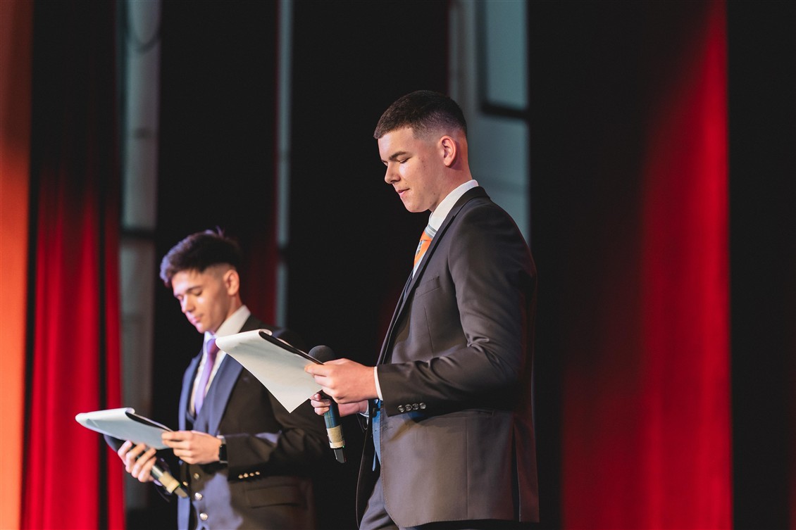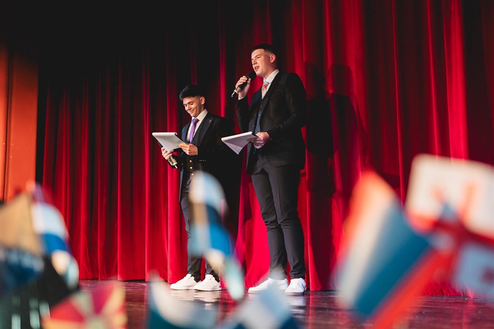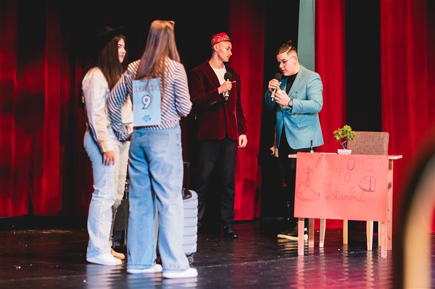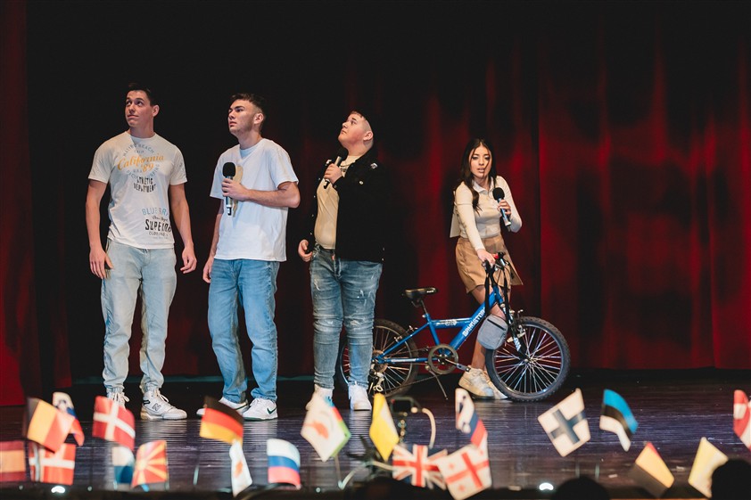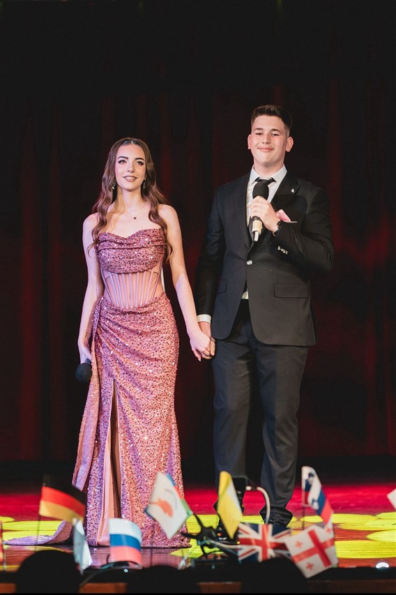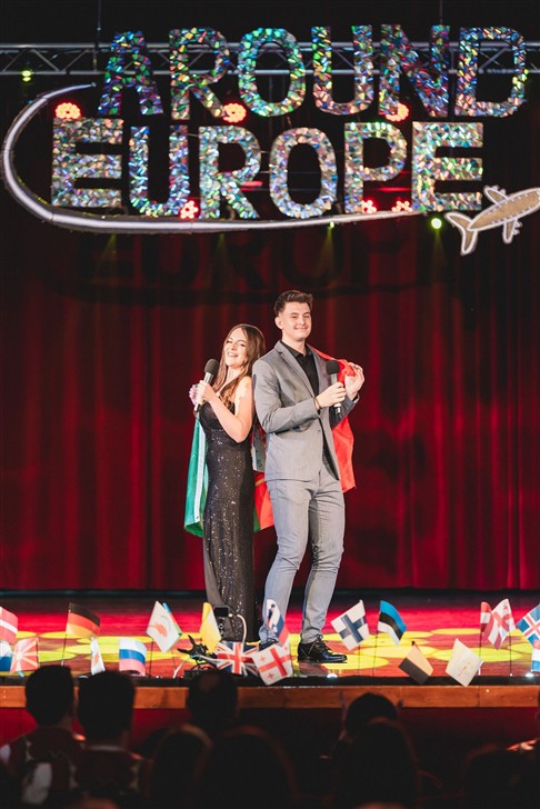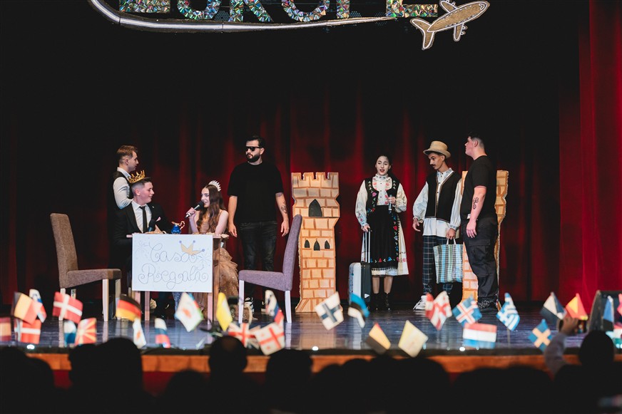 Cezar și Ionuț au fost adevărații ghizi ai acestei aventuri. Plini de umor și energie, au reușit să creeze o atmosferă relaxată, în care bobocii și publicul s-au simțit imediat acasă. Fiecare intrare pe scenă a fost precedată de replici amuzante, mici glume și invitații la aplaudat, la râs și la trăit fiecare moment la intensitate maximă. „Încă de când eram mici, visam să explorăm lumea. Să vedem Turnul Eiffel, să gustăm o pizza adevărată în Italia sau să ne pierdem pe străduțele albe din Grecia.”, a spus Ionuț.