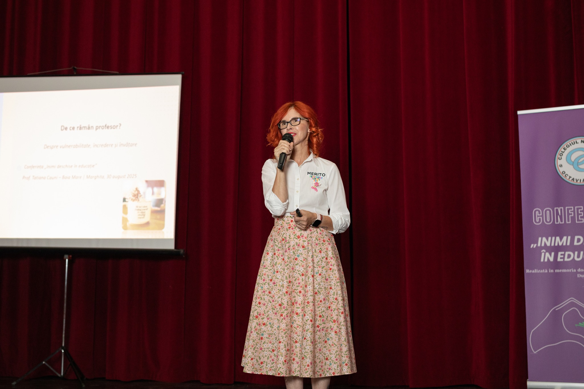 Am deschis Conferința „Inimi Deschise în Educație” cu gândul la colega noastră dragă, Cristina Dutkaș. Prin videoclipul emoționant realizat de elevi și prin interpretarea piesei sale preferate, „Perfect”, de către Maria Ropotean, Daryana Șanta și Sonia Nyiri, am simțit că ea este alături de noi, zâmbind și sprijinindu-ne, așa cum a făcut mereu.