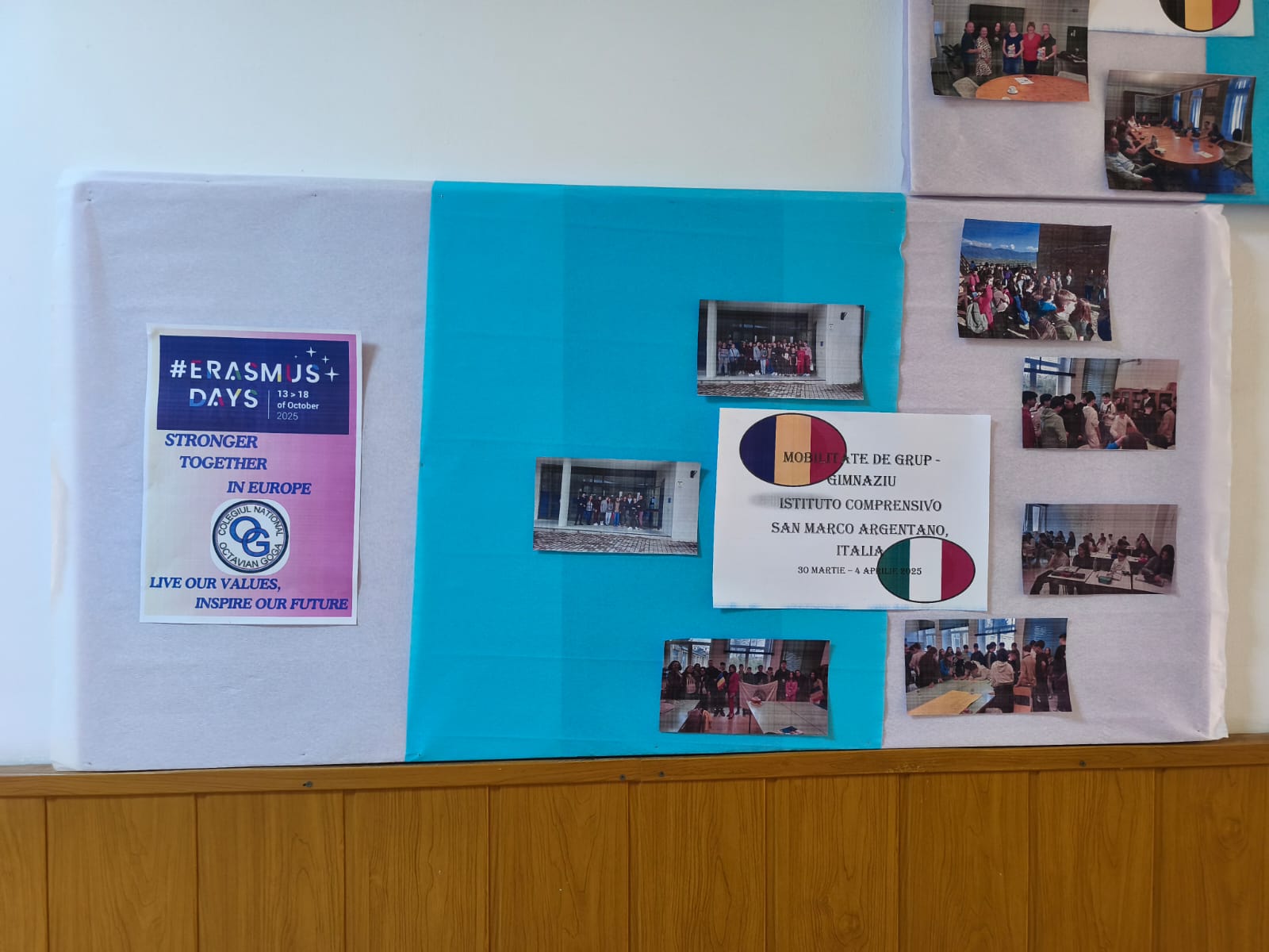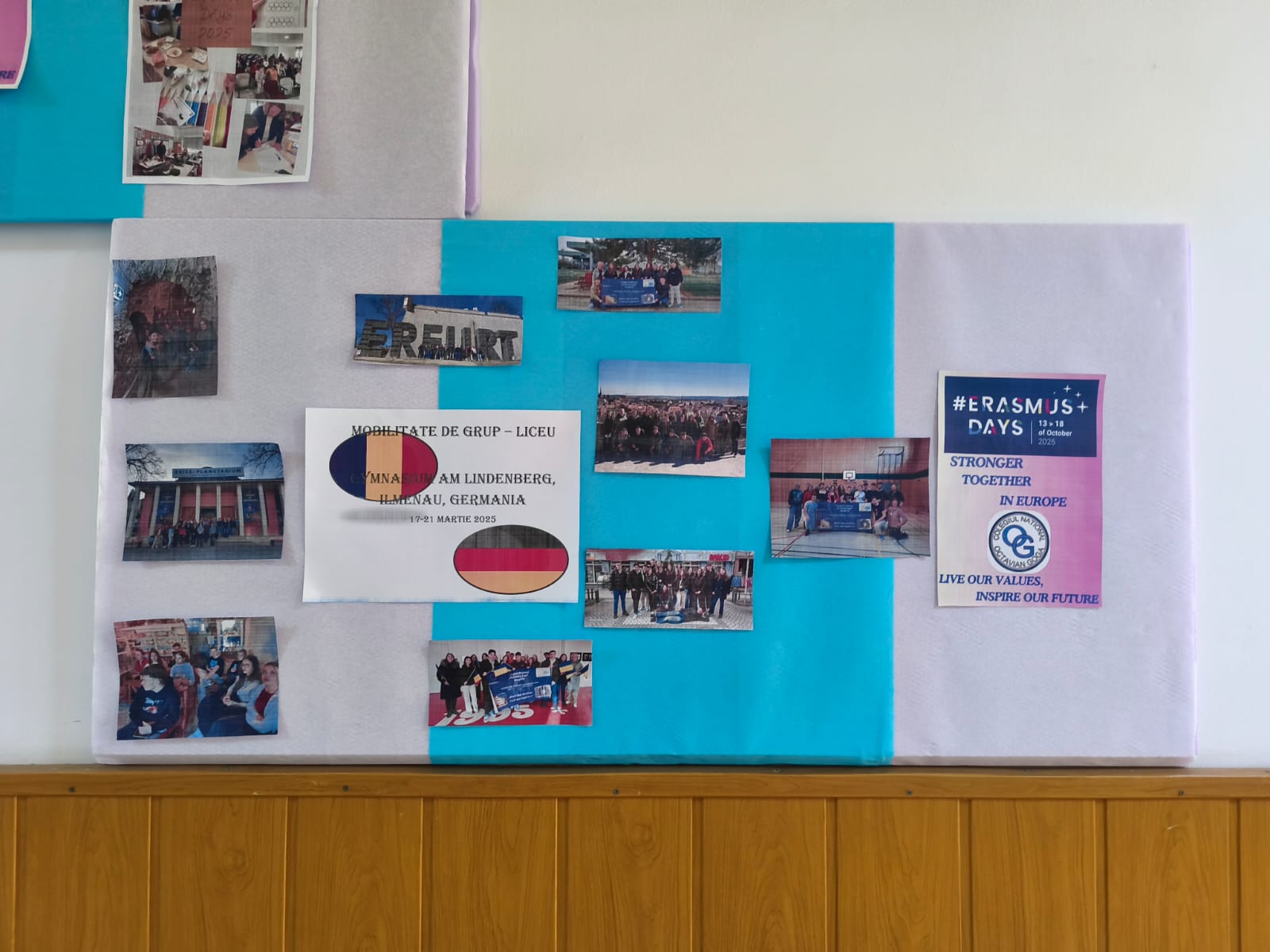 Pentru a celebra experiențele acumulate, participanții la cele patru mobilități din anul școlar 2024-2025 au realizat panouri cu imagini reprezentative pentru activitățile din mobilități, panouri care au fost expuse în cele două locații ale Colegiul Național „Octavian Goga” (Goga 1 și Goga 2). Panourile se alătură celor realizate în anul școlar precedent, conturând astfel un Colț ERASMUS pe holurile școlii noastre, în semn de recunoștință pentru oportunitățile oferite de acest program finanțat de Uniunea Europeană.