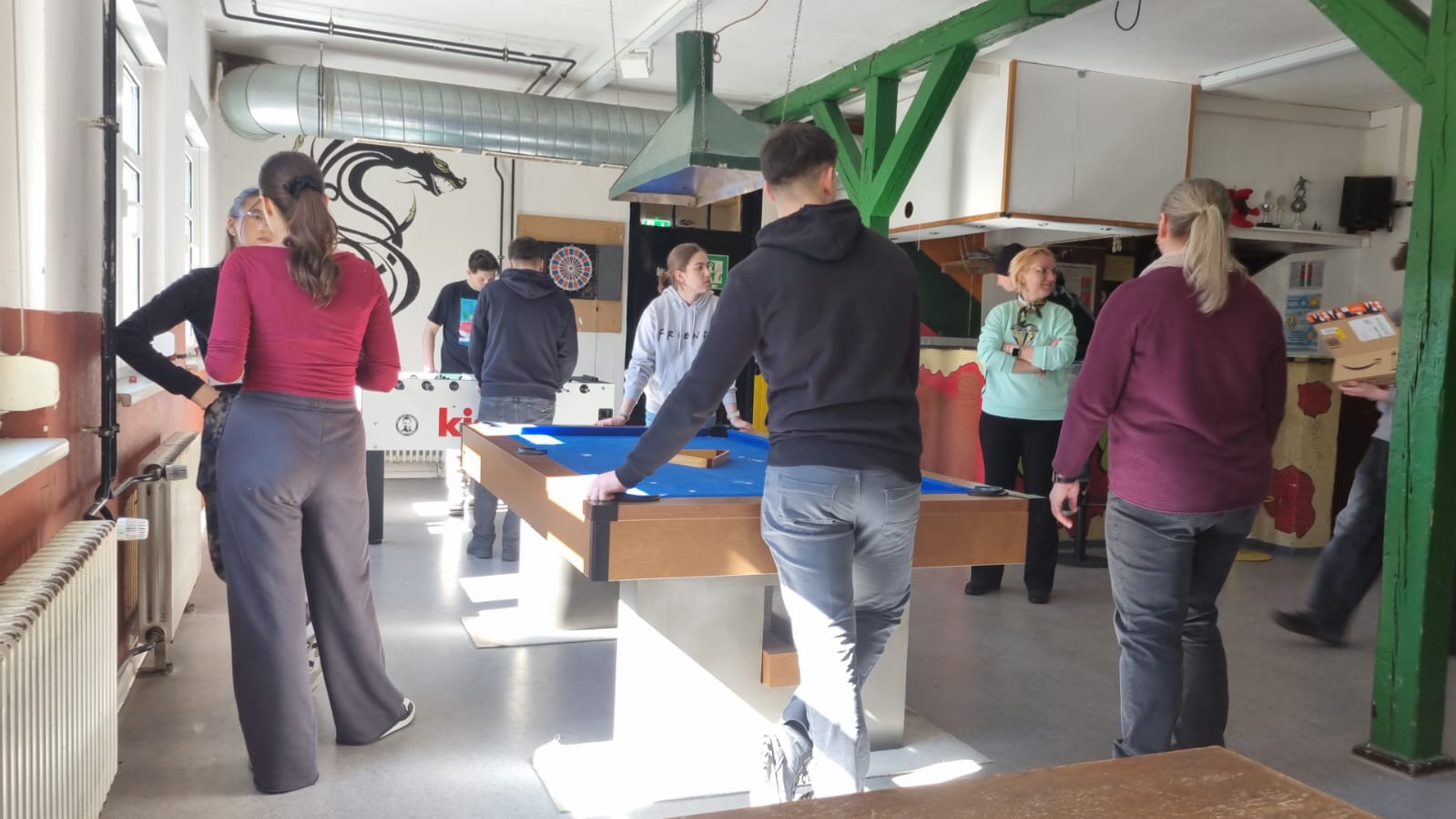 După această aventură ne-am adunat cu toții într-un loc special destinat tinerilor de vârsta noastră (un club al tinerilor) cu jocuri specifice. Aici elevii gazdă ne-au gătit o mâncare tradițională, iar la rândul nostru i-am răsfățat cu clătitele noastre tradiționale.