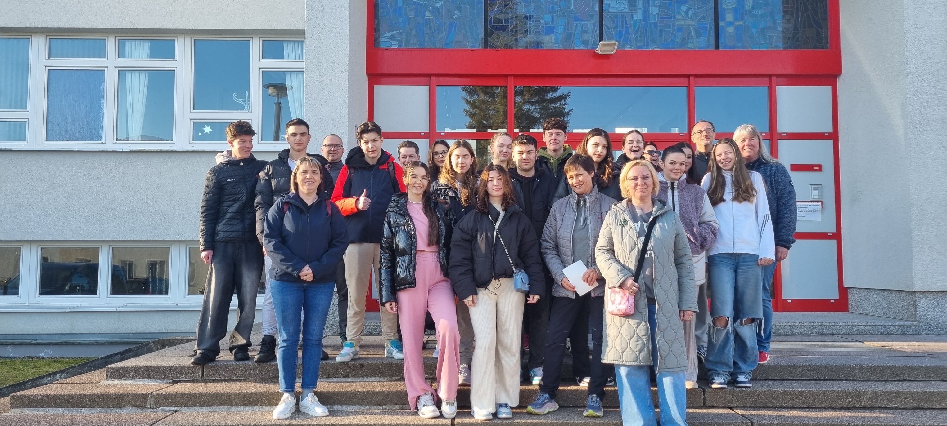 Luni, 17.03.2025, a fost prima zi la şcoala din Ilmenau. Ne-am întâlnit cu profesorii şi colegii germani la intrarea în şcoală. În laboratorul de științe am participat câteva jocuri cu scopul de a ne cunoaşte mai bine, atât elevi, cât şi profesori. Regula de bază era: să formăm perechi mixte româno-germane.